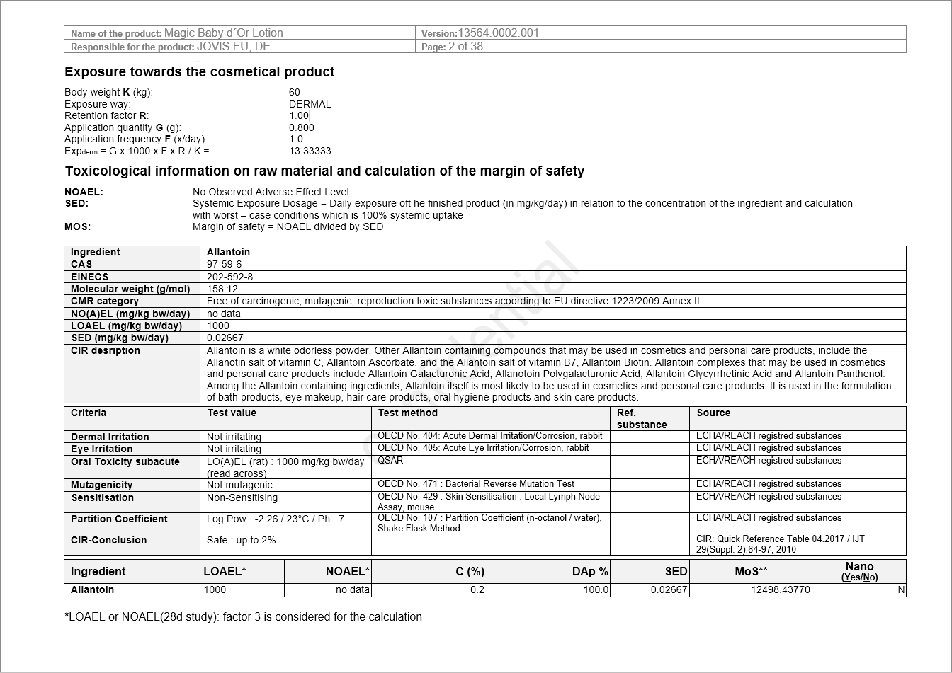 - Berechnung der systemischen Expositionsdosis (SED) und des Sicherheitsabstandes (MoS)